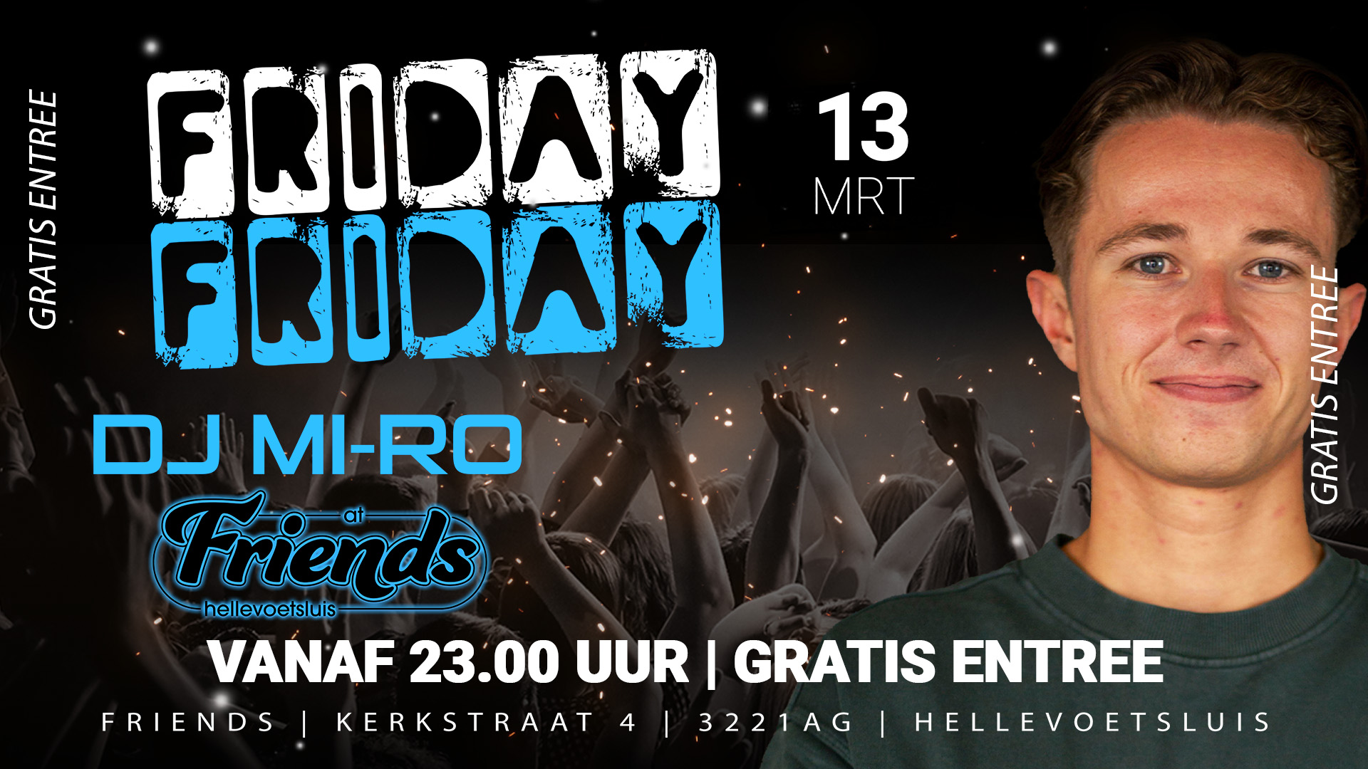 Friday @ Friends met DJ MI-RODoor Danny Reijnen / november 6, 2025 Event details 2026-03-13 vrijdag, 11:00 PM to 4:00 AM Print Contact event manager 2795 2026-03-13YOUR NAME* YOUR EMAIL* YOUR PHONE Food Choice 1 2 3 4YOUR MESSAGE Book your tickets 2026-03-13 00:00:00 Friday @ Friends met DJ MI-RO-2026-03-13 https://devriendenvandevesting.nl/eventer/friday-friends-met-dj-mi-ro/edate/2026-03-13 Name* Your email* LAST NAME YOUR PHONE YOUR ADDRESS ADDITIONAL NOTES 2795 Choose tickets Offline payment $0 Credit or debit card Bank NameAccount No: 0000 1400 1211IFSC Code: 00001321Branch Address Back to details Thank you Kindly Event Friday @ Friends met DJ MI-RO Date & Time vrijdag, 11:00 PM to 4:00 AMmaart 13, 2026 Order # 000000 Attendee Event Friday @ Friends met DJ MI-RO Ticket Date & Time vrijdag, 11:00 PM to 4:00 AMmaart 13, 2026 PRINT